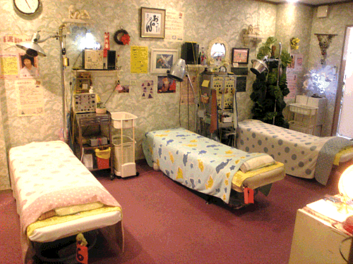 | 治療室内は、パステル調の色彩と、アロマの香りなどでとてもリラックスできる空間となっています。 各ベッドはカーテンで仕切られ、女性でも安心して治療が受けられます。また、基本的に薄着になっていただきますが、タオルケットを掛け、一部分ずつ施術しますので恥ずかしがり屋の方も大丈夫! |
